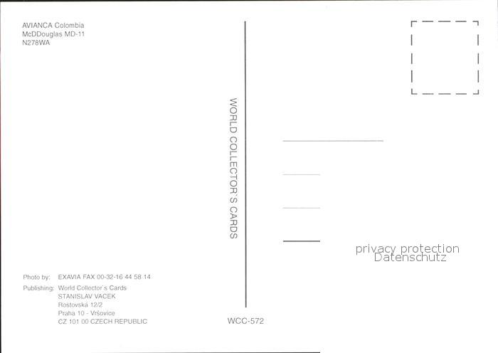Flugzeuge Zivil Avianca Colombia McDDouglas MD-11 N278WA postalisch nicht gelaufen Erhaltung siehe scans