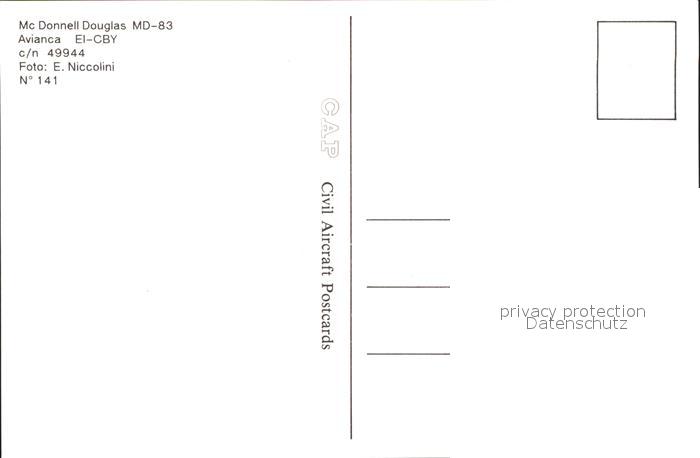 Flugzeuge Zivil Avianca Colombia McDonnell Douglas MD-83 EI-CBY c/n 49944 postalisch nicht gelaufen Erhaltung siehe scans