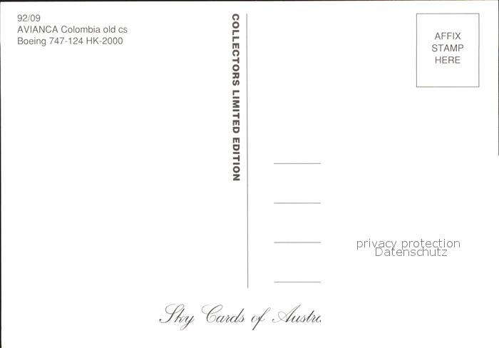 Flugzeuge Zivil Avianca Colombia old cs Boeing 747-124 HK-2000 postalisch nicht gelaufen Erhaltung siehe scans