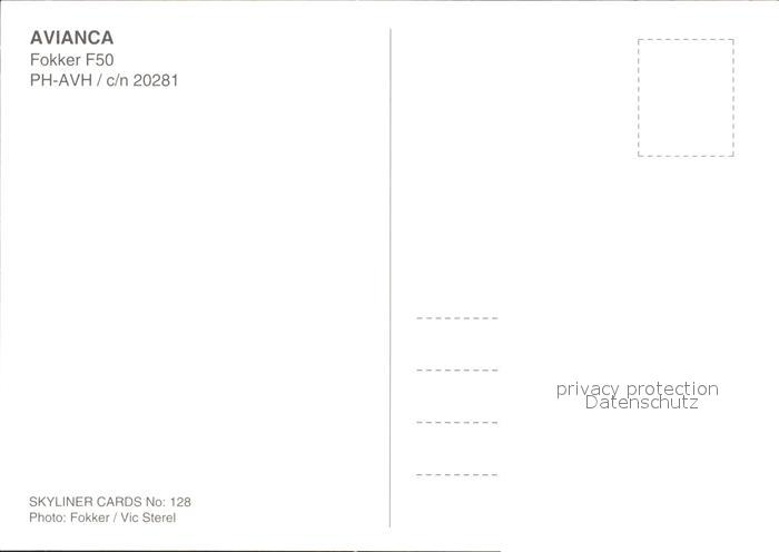 Flugzeuge Zivil Avianca Fokker F50 PH-AVH c/n 20281 postalisch nicht gelaufen Erhaltung siehe scans