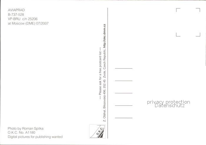 Flugzeuge Zivil Aviaprad B-737-528 VP-BRU c/n 25206 postalisch nicht gelaufen Erhaltung siehe scans