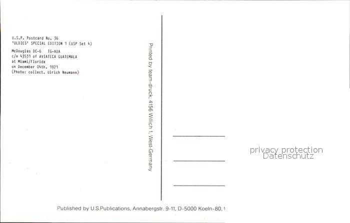 Flugzeuge Zivil Aviateca Guatemala McDouglas DC-6 TG-ADA c/n 43531 postalisch nicht gelaufen Erhaltung siehe scans