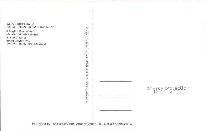 Flugzeuge Zivil Avico-Ecuador McDouglas DC-6 HC-APF c/n 42882 postalisch nicht gelaufen Erhaltung siehe scans