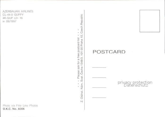 Flugzeuge Zivil Azerbaijan Airlines CL-44-0 Guppy 4K-GUP c/n 16 postalisch nicht gelaufen Erhaltung siehe scans