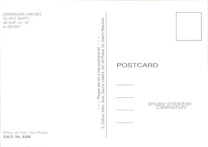 Flugzeuge Zivil Azerbaijan Airlines CL-44-0 Guppy 4K-GUP c/n16 postalisch nicht gelaufen Erhaltung siehe scans