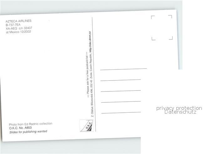 Flugzeuge Zivil Azteca Airlines B-737-7EA XA-AEQ c/n 32407 postalisch nicht gelaufen Erhaltung siehe scans