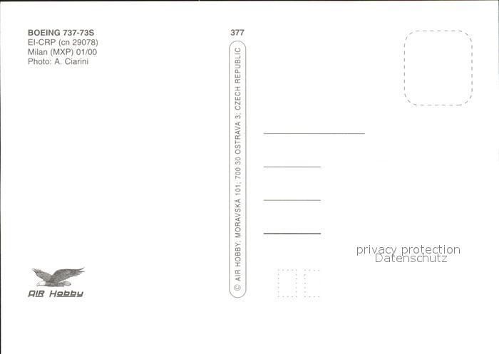Flugzeuge Zivil Azzurra Boeing 737-73S EI-CRP cn 29078 postalisch nicht gelaufen Erhaltung siehe scans