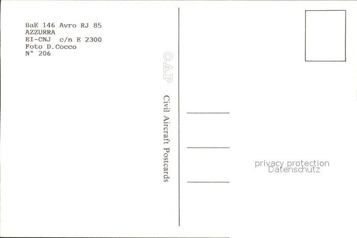 Flugzeuge Zivil BaE-146 Avro RJ 85 Azzurra EI-CNJ c/n E 2300 postalisch nicht gelaufen Erhaltung siehe scans