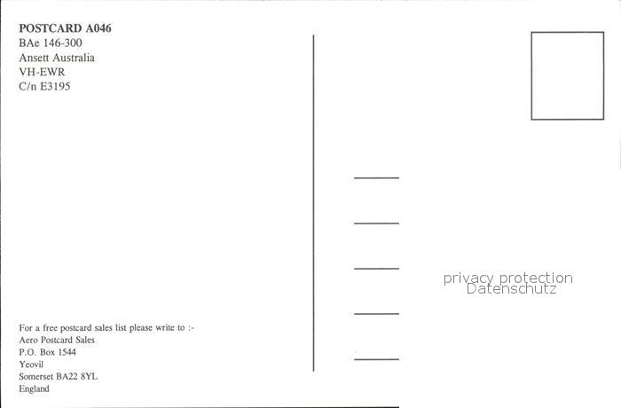 Flugzeuge Zivil BAe 156-300 Ansett Australia VH-EWR postalisch nicht gelaufen Erhaltung siehe scans