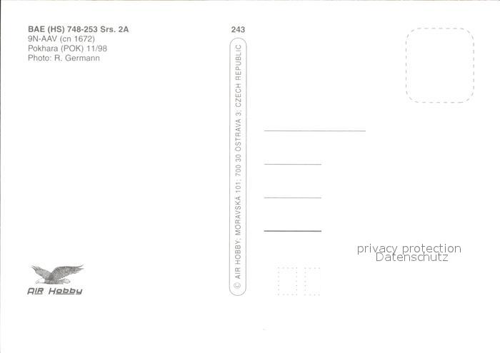 Flugzeuge Zivil BAe HS 748-253 Srs. 2A 9N-AAV cn 1672 postalisch nicht gelaufen Erhaltung siehe scans