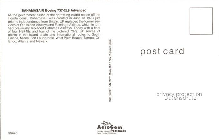 Flugzeuge Zivil Bahamasair Boeing 737-2L9 Advanced postalisch nicht gelaufen Erhaltung siehe scans
