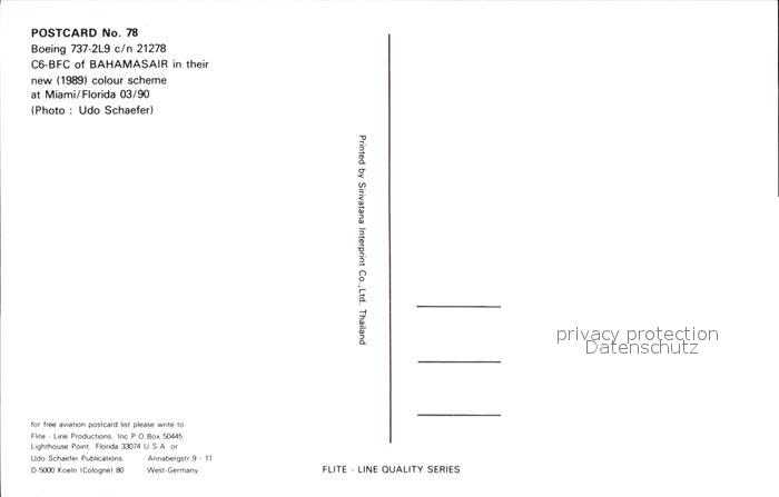 Flugzeuge Zivil Bahamasair Boeing 737-2L9 c/n 21278 C6-BFC postalisch nicht gelaufen Erhaltung siehe scans