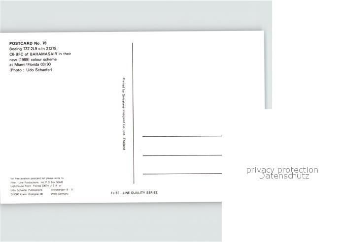 Flugzeuge Zivil Bahamasair Boeing 737-2L9 c/n 21278 C6-BFC postalisch nicht gelaufen Erhaltung siehe scans