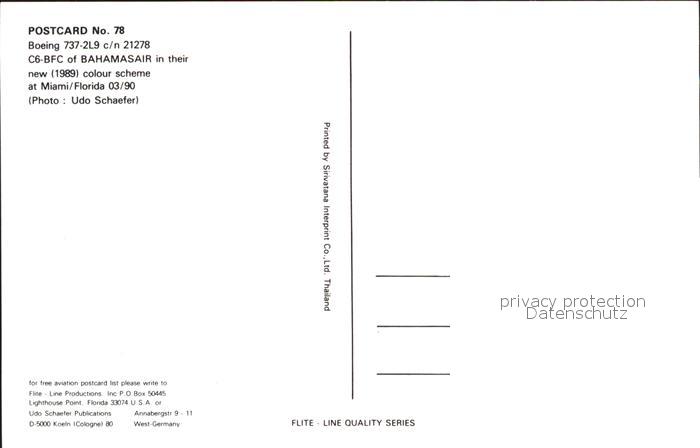 Flugzeuge Zivil Bahamasair Boeing 737-2L9 c/n 21278 C6-BFC postalisch nicht gelaufen Erhaltung siehe scans