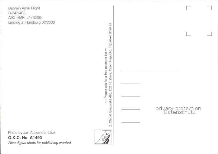 Flugzeuge Zivil Bahrain Amiri Flight B-747-4P8 A9C-HMK c/n 33684 postalisch nicht gelaufen Erhaltung siehe scans