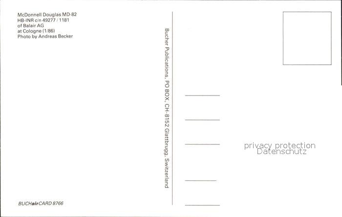 Flugzeuge Zivil Balair AG McDonnell Douglas MD-82 HB-INR c/n 49277/1181 postalisch nicht gelaufen Erhaltung siehe scans