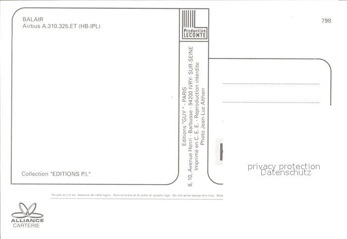 Flugzeuge Zivil Balair Airbus A-310-325 ET HB-IPL postalisch nicht gelaufen Erhaltung siehe scans