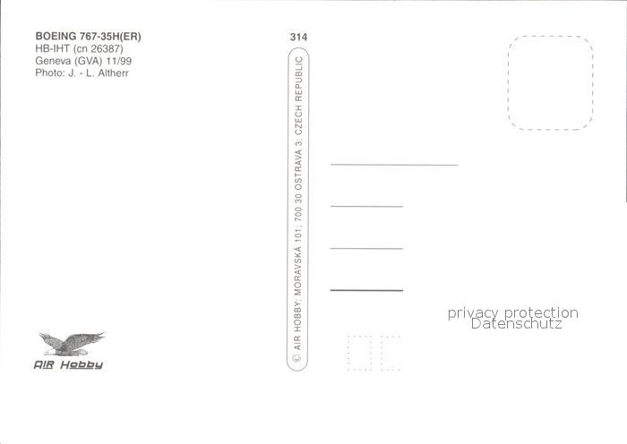 Flugzeuge Zivil Balair Boeing 767-35H ER HB:IHT cn 26387 postalisch nicht gelaufen Erhaltung siehe scans
