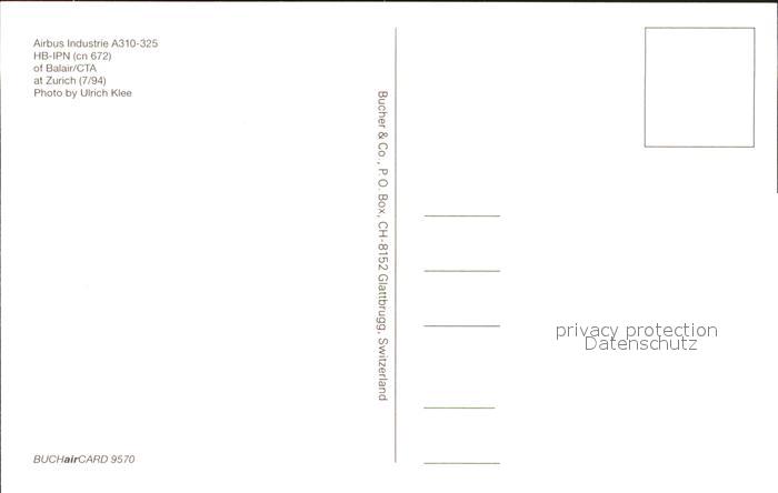 Flugzeuge Zivil Balair cta A310-325 HB-IPN cn 672 postalisch nicht gelaufen Erhaltung siehe scans