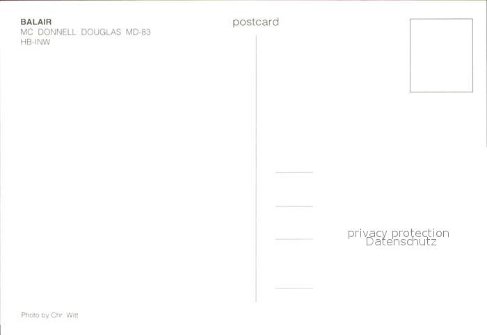 Flugzeuge Zivil Balair MC Donnell Douglas MD-83 HB-INW postalisch nicht gelaufen
