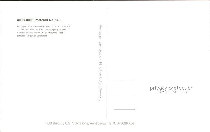 Flugzeuge Zivil Baltic Airlines Aerospatiale Caravelle 10B OY-STF c/n 257 postalisch nicht gelaufen Erhaltung siehe scans
