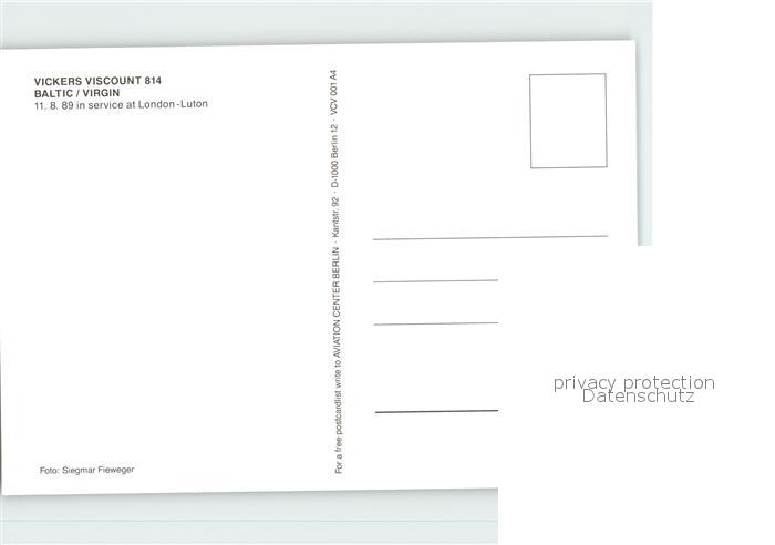 Flugzeuge Zivil Baltic Virgin Vickers Viscount 814 postalisch nicht gelaufen Erhaltung siehe scans