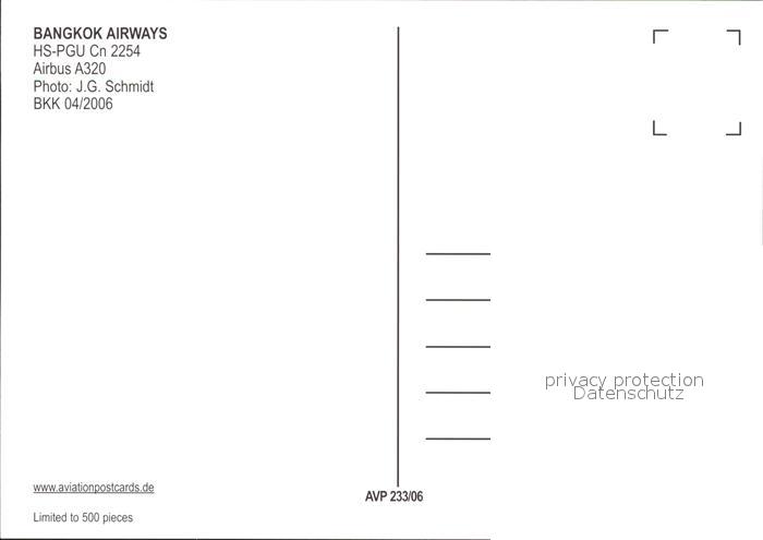 Flugzeuge Zivil Bangkok Airways A320 HS-PGU cn 2254 postalisch nicht gelaufen Erhaltung siehe scans