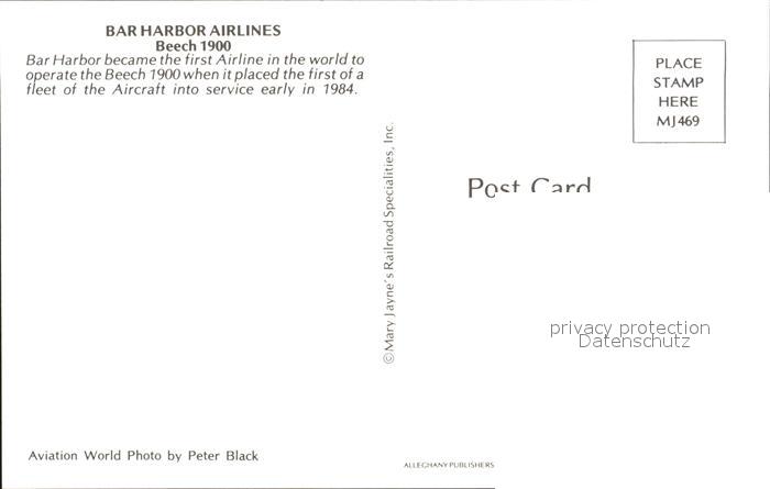 Flugzeuge Zivil Bar Harbor Airlines Beech 1900 postalisch nicht gelaufen Erhaltung siehe scans