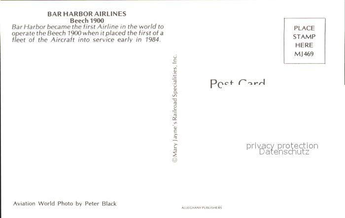 Flugzeuge Zivil Bar Harbor Airlines Beech 1900 postalisch nicht gelaufen Erhaltung siehe scans