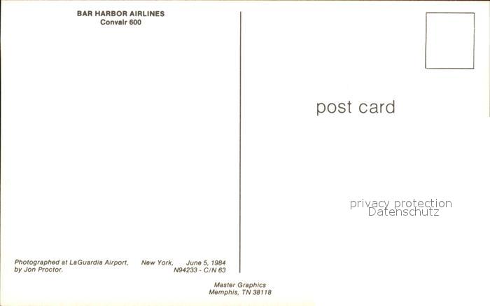 Flugzeuge Zivil Bar Harbor Airlines Convair 600 N94233 c/n 63 postalisch nicht gelaufen Erhaltung siehe scans