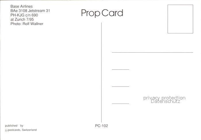 Flugzeuge Zivil Base Airlines BAe 3108 Jetstream 31 PH-KJG c/n 690 postalisch nicht gelaufen Erhaltung siehe scans