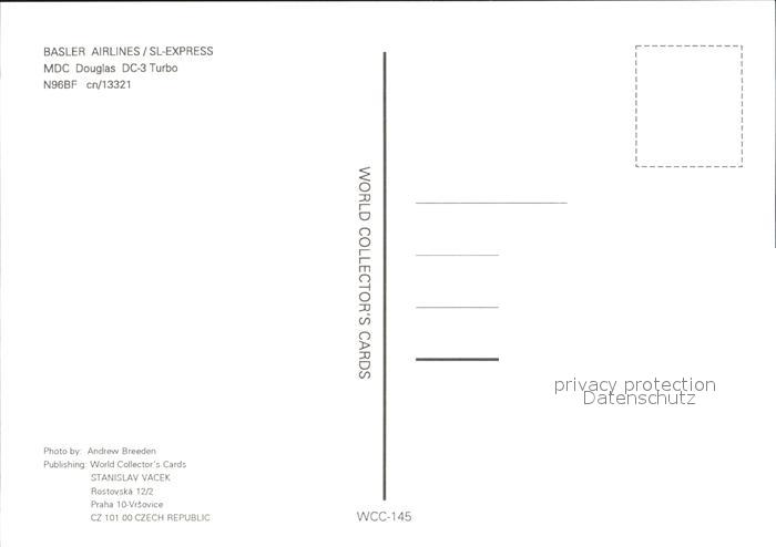 Flugzeuge Zivil Basler Airlines SL-Express MDC Douglas DC-3 Turbo N96BF cn 13321 postalisch nicht gelaufen Erhaltung siehe scans