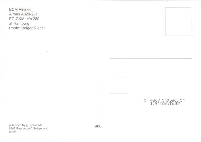 Flugzeuge Zivil BCM Airlines Airbus A320-231 EC-GKM c/n 280 postalisch nicht gelaufen Erhaltung siehe scans