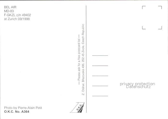Flugzeuge Zivil Bel Air MD-83 F-GKZL c/n 49402 postalisch nicht gelaufen Erhaltung siehe scans