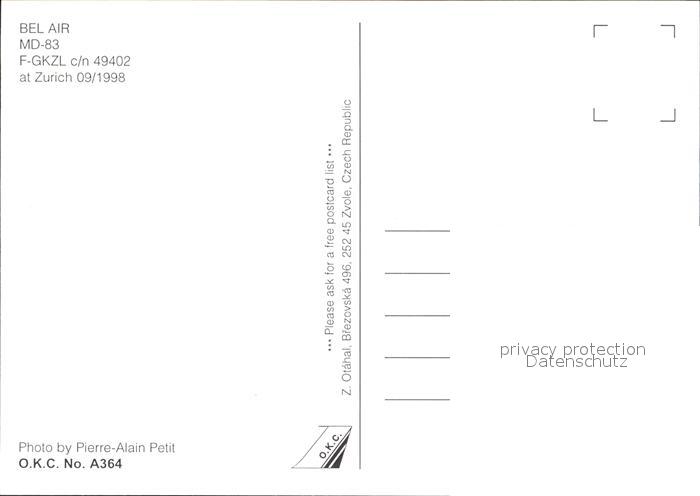 Flugzeuge Zivil Bel Air MD-83 F-GKZL c/n 49402 postalisch nicht gelaufen Erhaltung siehe scans
