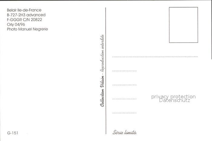Flugzeuge Zivil Belair Ile-de-France B-727-2H3 advanced F-GGGR c/n 20822 postalisch nicht gelaufen Erhaltung siehe scans