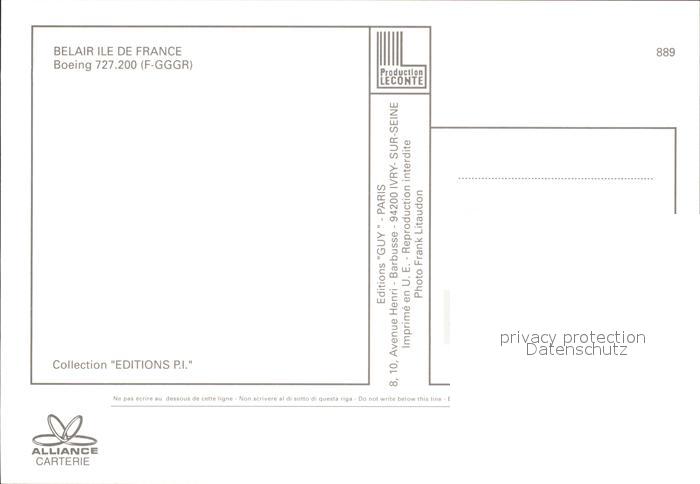 Flugzeuge Zivil Belair Ile de France Boeing 727.200 F-GGGR postalisch nicht gelaufen Erhaltung siehe scans