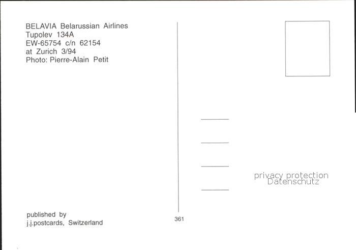 Flugzeuge Zivil Belavia Belarussian Airlines Tupolev 134A EW-65754 c/n 62154 postalisch nicht gelaufen Erhaltung siehe scans
