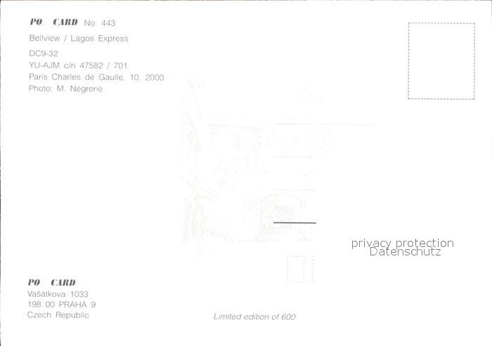 Flugzeuge Zivil Bellview Lagos Express DC9-32 YU-AJM c/n 47582/701 postalisch nicht gelaufen Erhaltung siehe scans