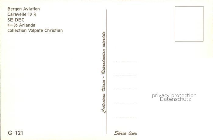 Flugzeuge Zivil Bergen Aviation Caravelle 10R SE-DEC postalisch nicht gelaufen Erhaltung siehe scans
