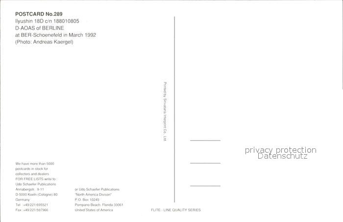 Flugzeuge Zivil Berline Ilyushin 18D D-AOAS postalisch nicht gelaufen Erhaltung siehe scans