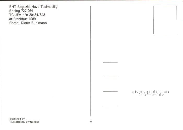 Flugzeuge Zivil BHT-Bogazici Hava Tasimaciligi Boeing 727-264 TC-JFA c/n 20434/842 postalisch nicht gelaufen Erhaltung siehe scans