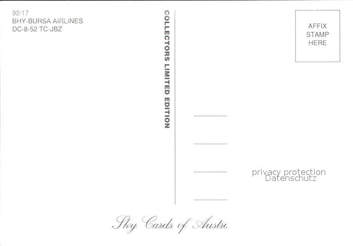 Flugzeuge Zivil BHY Bursa Airlines DC-8-52 TC-JBZ postalisch nicht gelaufen Erhaltung siehe scans