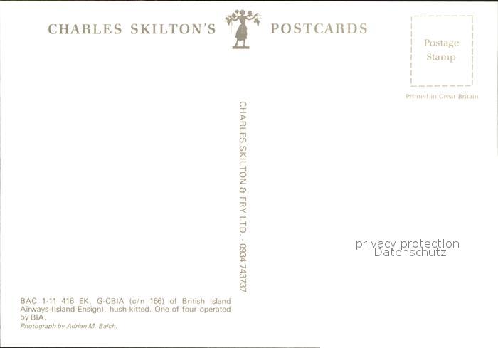 Flugzeuge Zivil BIA Bac 1-11 416 EK G-CBIA c/n 166 postalisch nicht gelaufen Erhaltung siehe scans