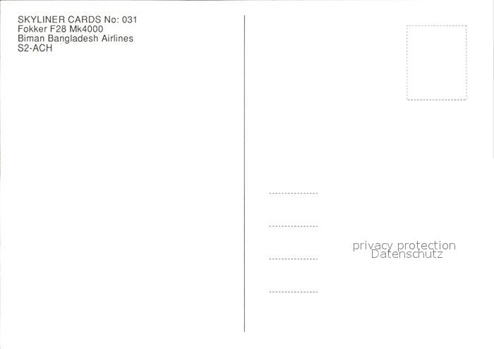 Flugzeuge Zivil Biman Bangladesh Airlines Fokker F-28 Mk4000 S2-ACH postalisch nicht gelaufen Erhaltung siehe scans