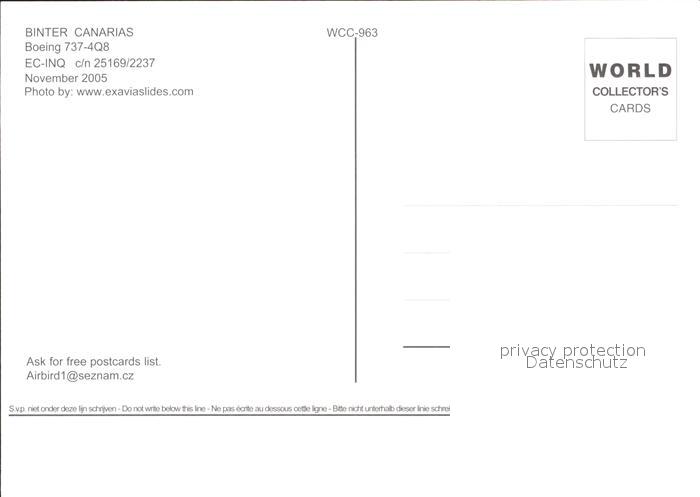 Flugzeuge Zivil Binter Canarias Boeing 737-4Q8 EC-INQ c/n 25169/2237 postalisch nicht gelaufen Erhaltung siehe scans