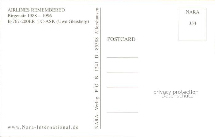 Flugzeuge Zivil Birgenair B-767-200ER TC-ASK postalisch nicht gelaufen Erhaltung siehe scans