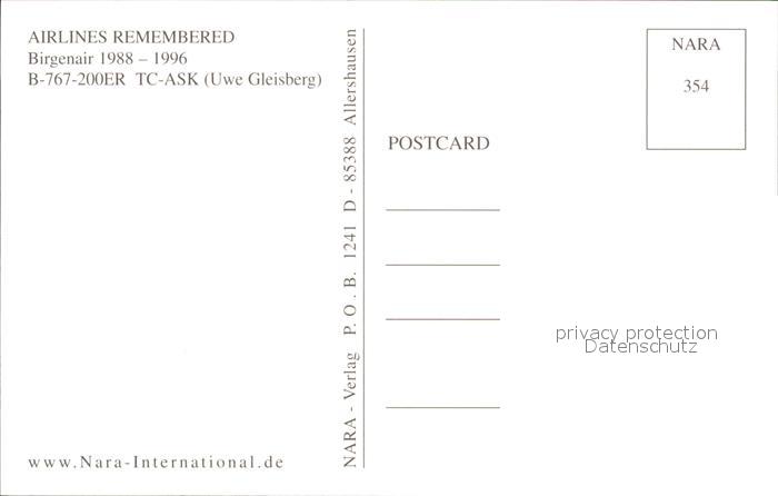 Flugzeuge Zivil Birgenair B-767-200ER TC-ASK postalisch nicht gelaufen Erhaltung siehe scans