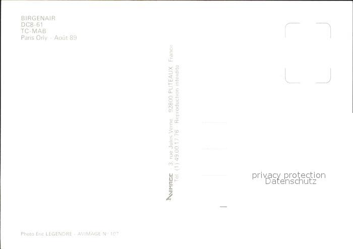 Flugzeuge Zivil Birgenair DC8-61 TC-MAB postalisch nicht gelaufen Erhaltung siehe scans