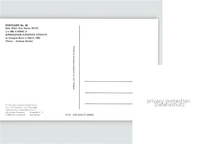 Flugzeuge Zivil Birmingham European Airways BAe BAC One Eleven 401AK postalisch nicht gelaufen Erhaltung siehe scans
